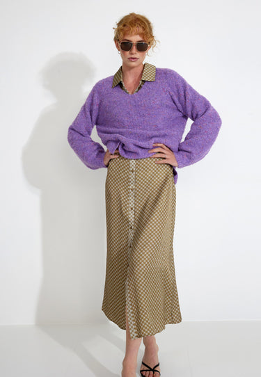 Mysig grovstickad lila tröja från Freequent med luftig passform och stretchigt material. Tröjan sitter skönt mot huden och passar perfekt till lite kyligare väder.