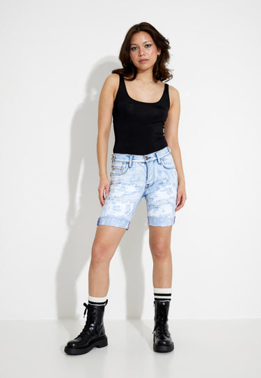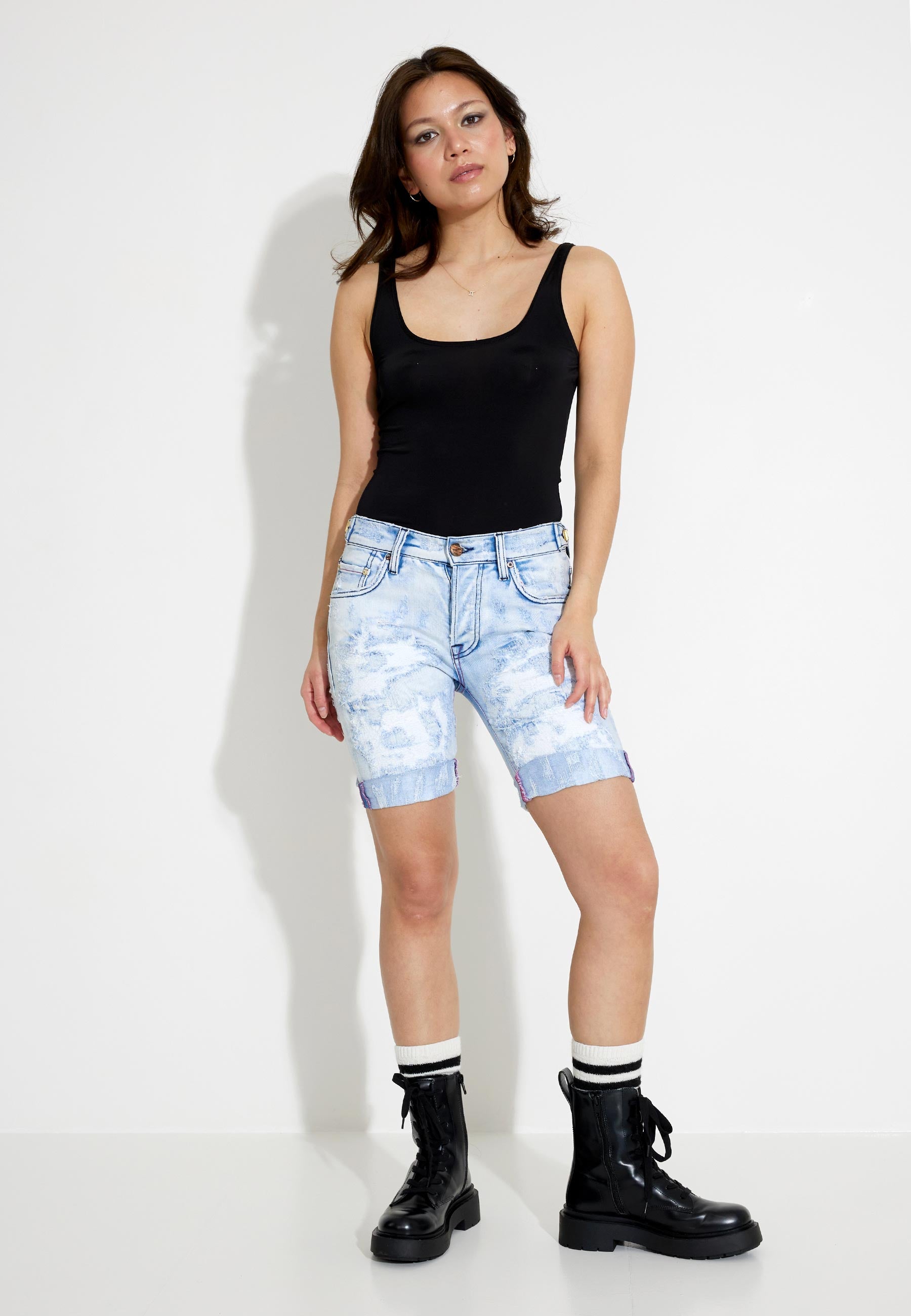 Jeansshorts von Nolita. Die Shorts haben eine schmale Passform, einen abgenutzten Look und rosa Nähte auf den Gesäßtaschen. * Ein cooles Sommer-Basic * Vergoldete Knöpfe und Details * Passt zu Ihren Lieblings-Basics * Eigenbezeichnung der Marke: Bart Denim Stretch