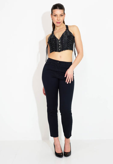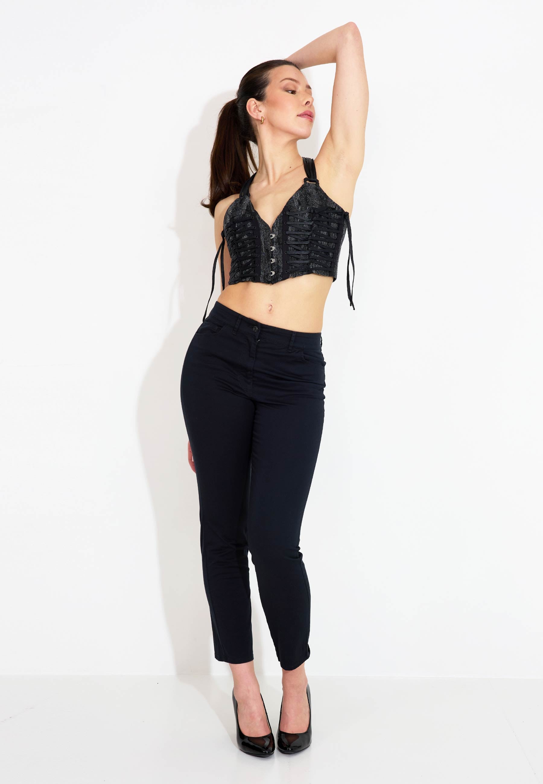 Black trousers from Stefanel with a normal-high waist and a figure-hugging fit. Wear for everyday wear with your favorite tops.
