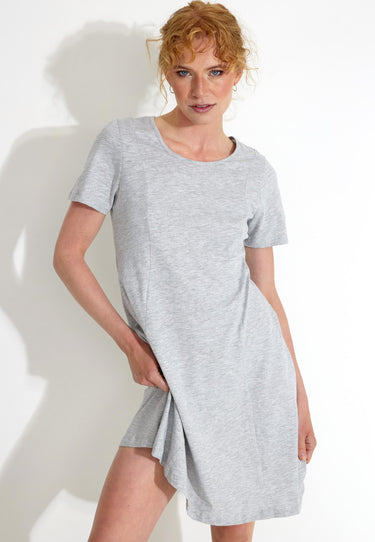 A short-sleeved light gray dress from Freequent. The dress has an airy fit and can therefore be easily worn with a pair of sneakers or sandals for a stylish casual look.